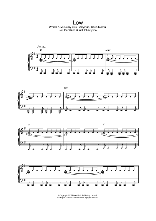Digital Sheet Music for Low by Chris Martin, Coldplay, Jonny Buckland, Guy Berryman scored for Piano/Vocal/Chords; id:385874