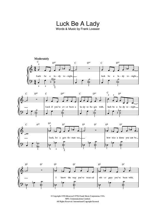 Digital Sheet Music for Luck, Be A Lady by Frank Sinatra, Frank Loesser scored for Piano/Vocal/Chords; id:384485