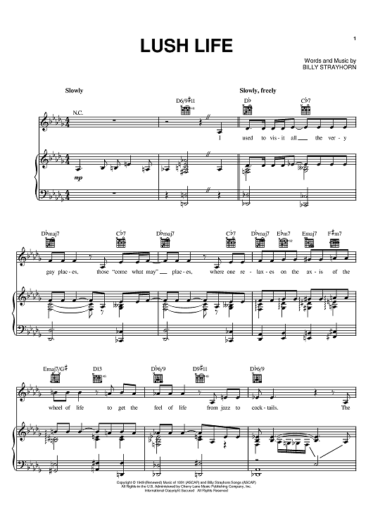Digital Sheet Music for Lush Life by Billy Strayhorn scored for Piano/Vocal/Chords; id:391700
