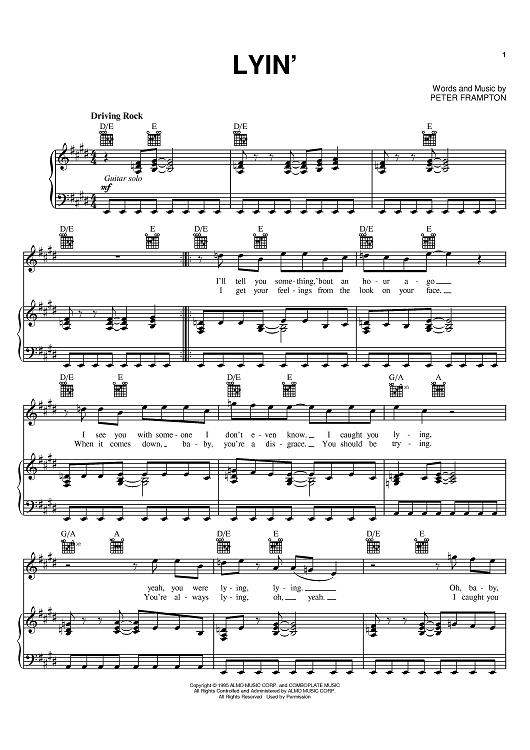 Digital Sheet Music for Lyin' by Peter Frampton scored for Piano/Vocal/Chords; id:383789