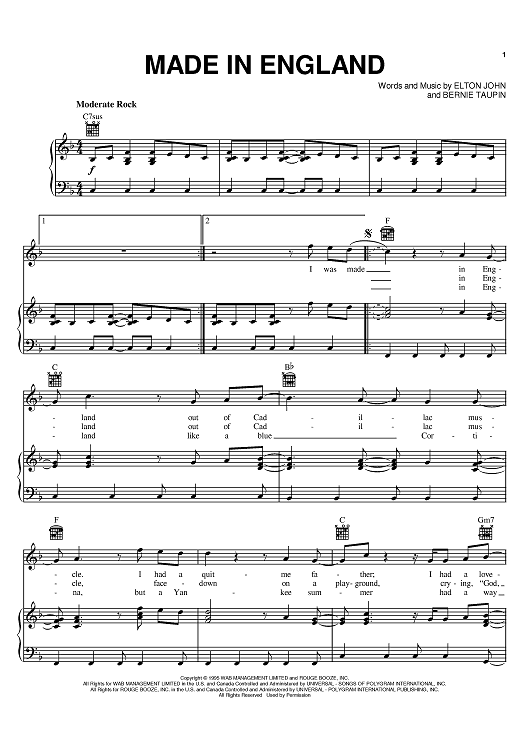 Digital Sheet Music for Made In England by Elton John, Bernie Taupin scored for Piano/Vocal/Chords; id:392552