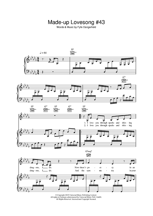 Digital Sheet Music for Made Up Love Song #43 by Fyfe Dangerfield, Guillemots scored for Piano/Vocal/Chords; id:401427