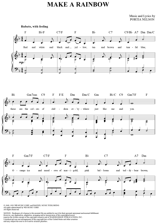 Digital Sheet Music for Make a Rainbow by Portia Nelson, Marilyn Horne scored for Piano/Vocal/Chords; id:286447