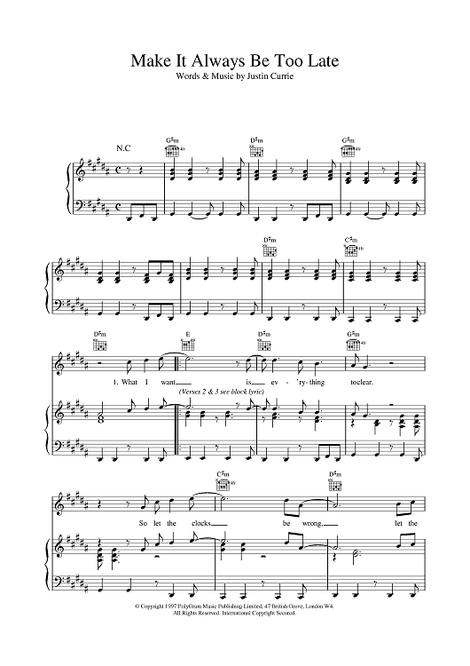 Digital Sheet Music for Make It Always Be Too Late by Del Amitri scored for Piano/Vocal/Chords; id:376511