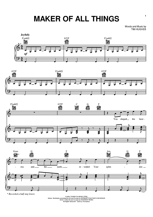 Digital Sheet Music for Maker Of All Things by Tim Hughes, Tree63 scored for Piano/Vocal/Chords; id:382088