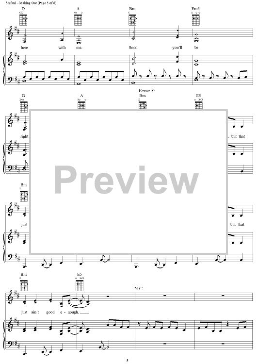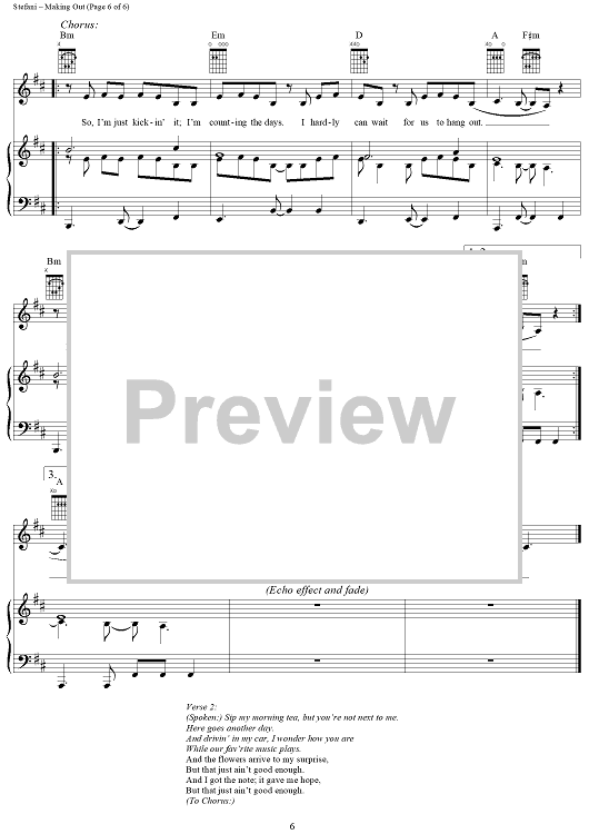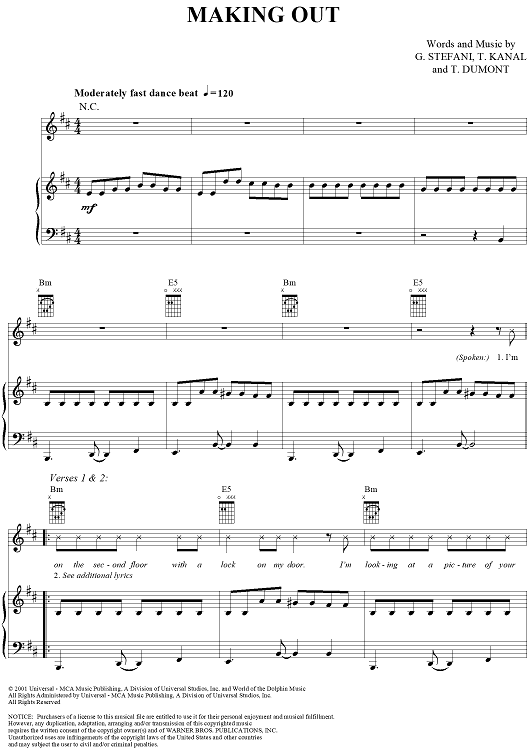 Digital Sheet Music for Making Out by No Doubt, Tom Dumont, Tony Kanal, Gwen Stefani scored for Piano/Vocal/Chords; id:293574