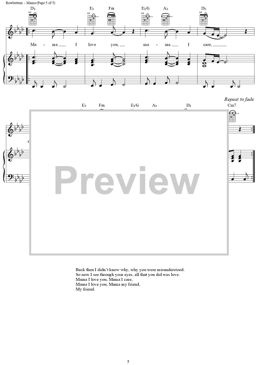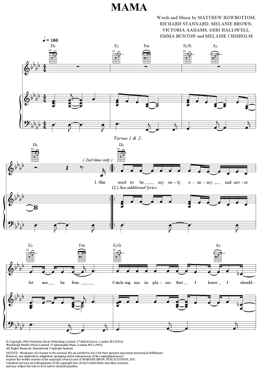 Digital Sheet Music for Mama by Matthew Rowebottom, Emma Bunton, Melanie Brown, Mel C, Geri Halliwell, Richard Stannard, Victoria Aadams, Spice Girls scored for Piano/Vocal/Chords; id:254535