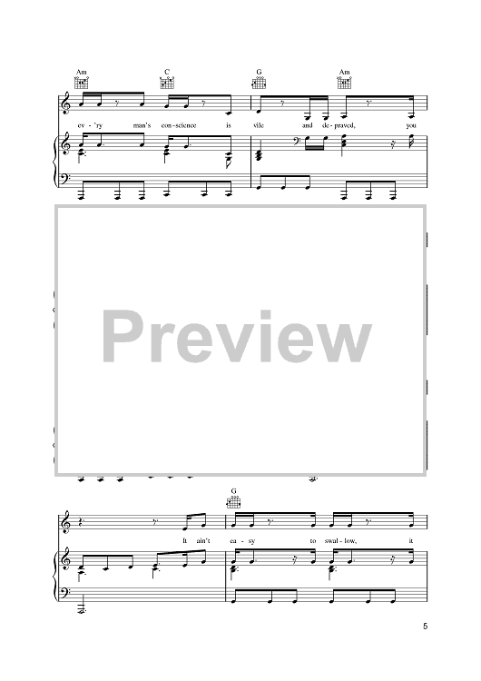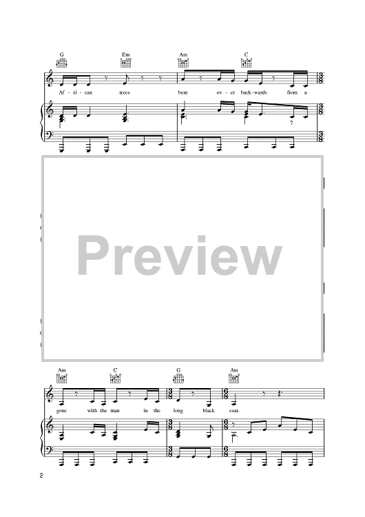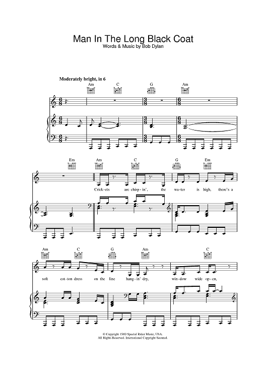 Digital Sheet Music for Man In The Long Black Coat by Bob Dylan scored for Piano/Vocal/Chords; id:388686