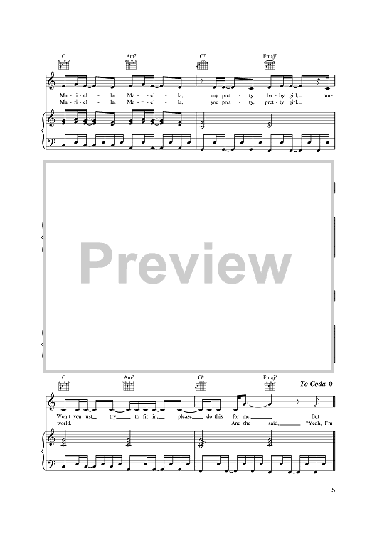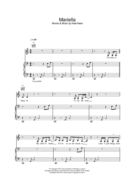 Digital Sheet Music for Mariella by Kate Nash scored for Piano/Vocal/Chords; id:401922