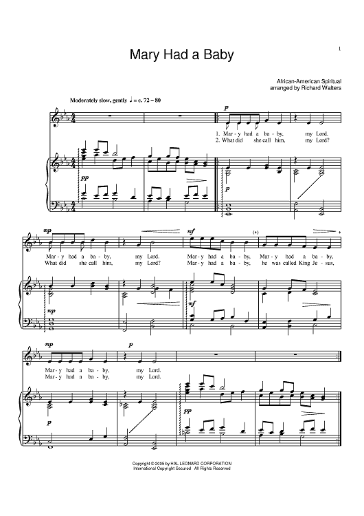 "Mary Had A Baby" Sheet Music by African American Spiritual