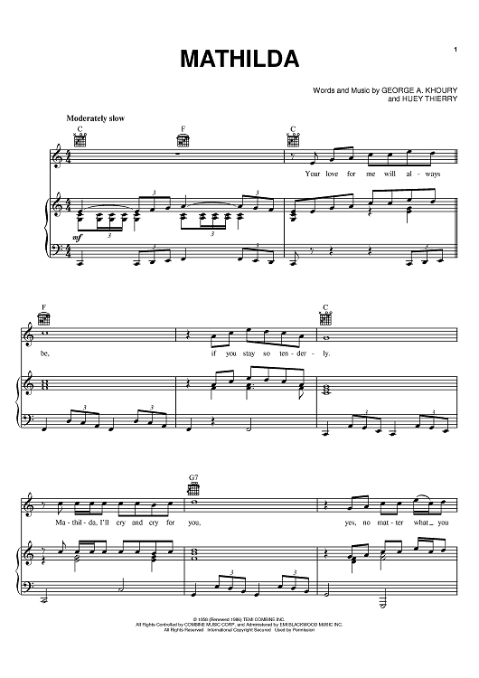 Digital Sheet Music for Mathilda by Freddy Fender, Cookie & The Cupcakes, The Fabulous Thunderbirds, George Khoury, Huey Thierry scored for Piano/Vocal/Chords; id:383737