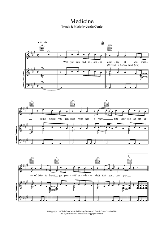 Digital Sheet Music for Medicine by Del Amitri scored for Piano/Vocal/Chords; id:376503