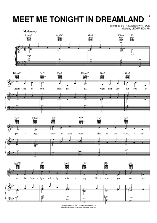 Digital Sheet Music for Meet Me Tonight In Dreamland by Leo Friedman, Beth Slater Whitson, Eddie Condon, Mills Brothers scored for Piano/Vocal/Chords; id:384444