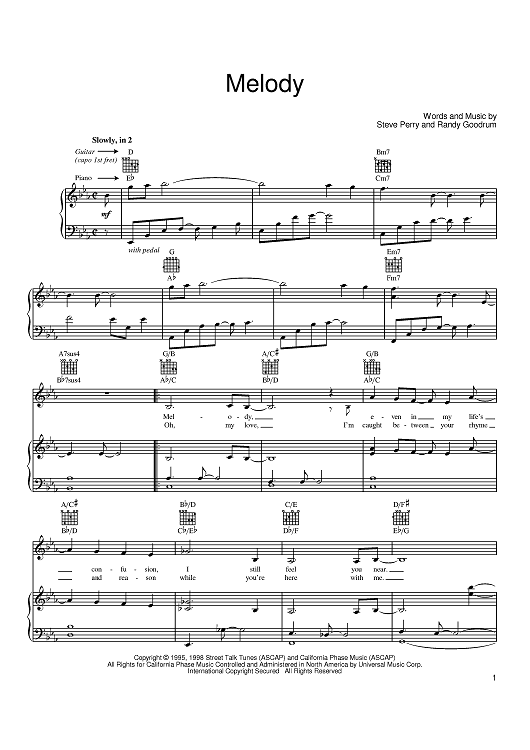 Digital Sheet Music for Melody by Steve Perry, Randy Goodrum scored for Piano/Vocal/Chords; id:394155