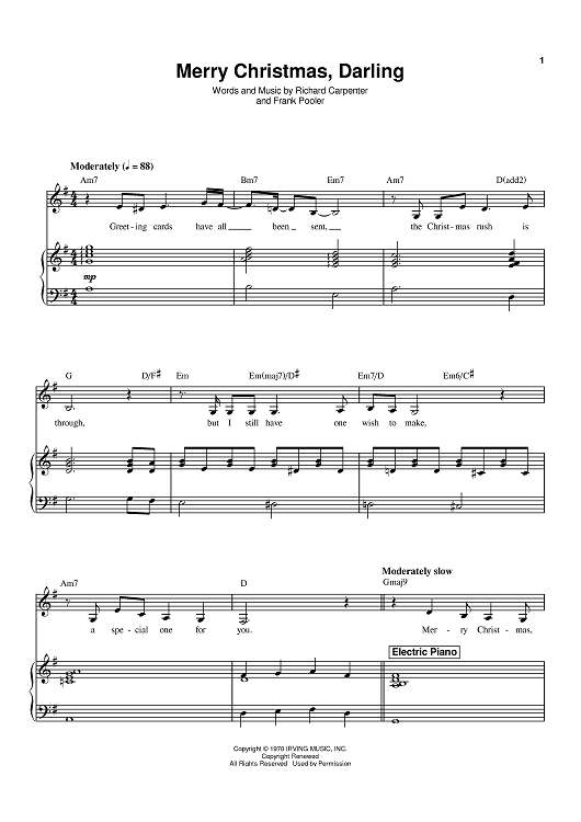 "Merry Christmas, Darling" Sheet Music by The Carpenters
