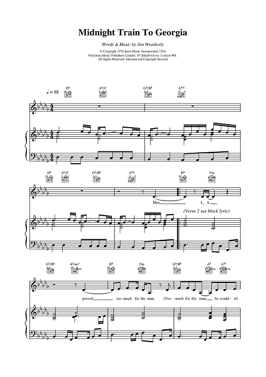 Digital Sheet Music for Midnight Train to Georgia by Gladys Knight, Jim Weatherly scored for Piano/Vocal/Chords; id:379872