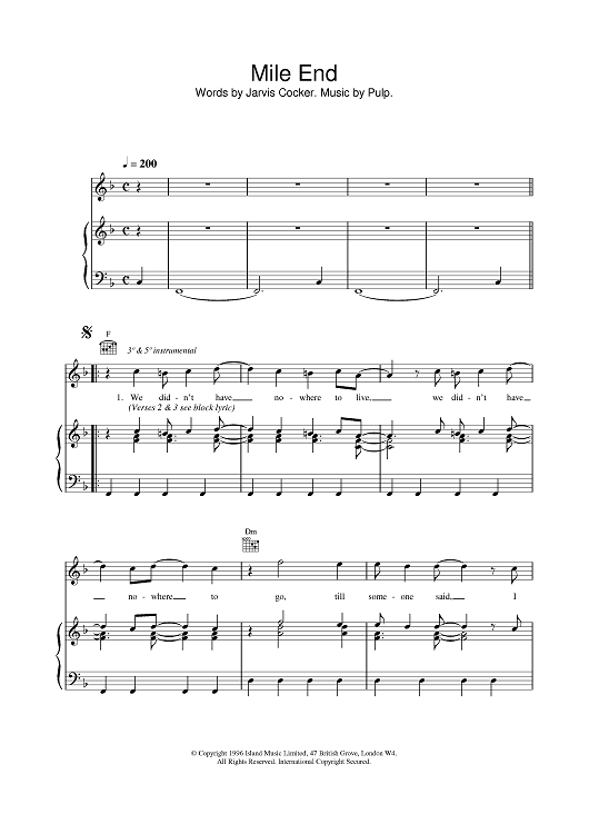 Digital Sheet Music for Mile End by Pulp scored for Piano/Vocal/Chords; id:376158