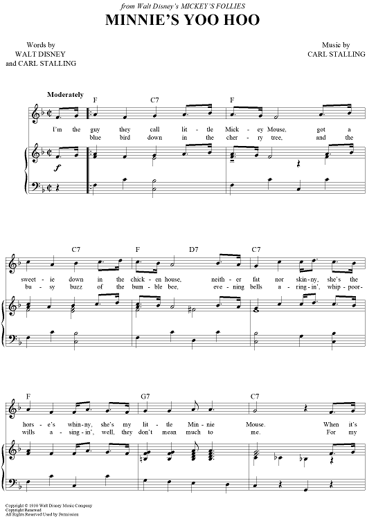 Digital Sheet Music for Minnie's Yoo Hoo by Walt Disney, Carl Stalling scored for Piano/Vocal/Chords; id:394586