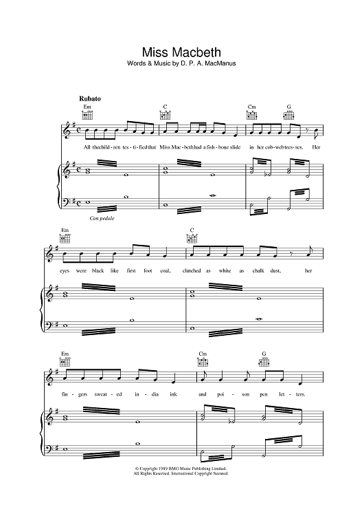 "Miss Macbeth" Sheet Music by Elvis Costello