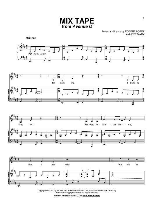 Digital Sheet Music for Mix Tape by Robert Lopez, Jeff Marx scored for Piano/Vocal/Chords; id:374127