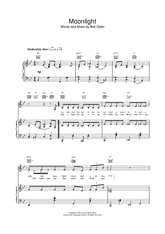 Digital Sheet Music for Moonlight by Bob Dylan scored for Piano/Vocal/Chords; id:377463