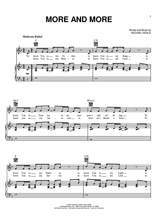 Digital Sheet Music for More And More by Michael Neale scored for Piano/Vocal/Chords; id:401696