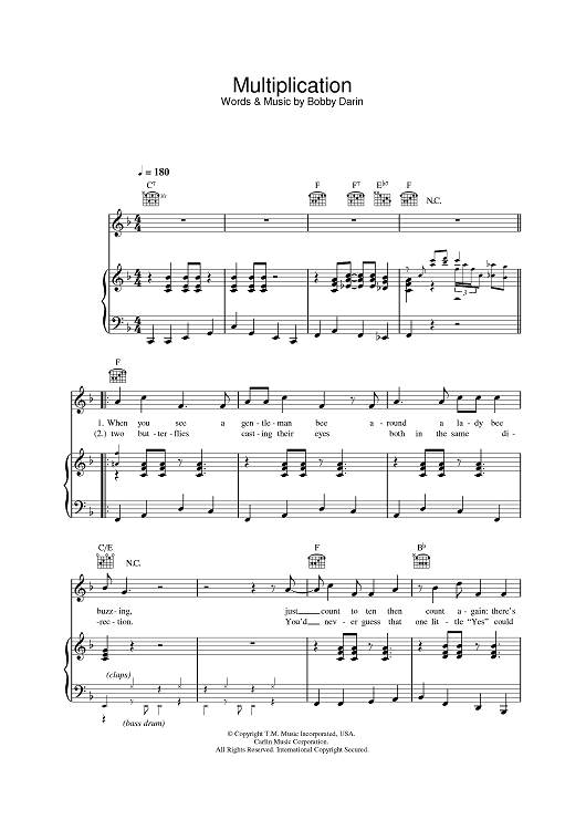 Digital Sheet Music for Multiplication by Bobby Darin scored for Piano/Vocal/Chords; id:383890