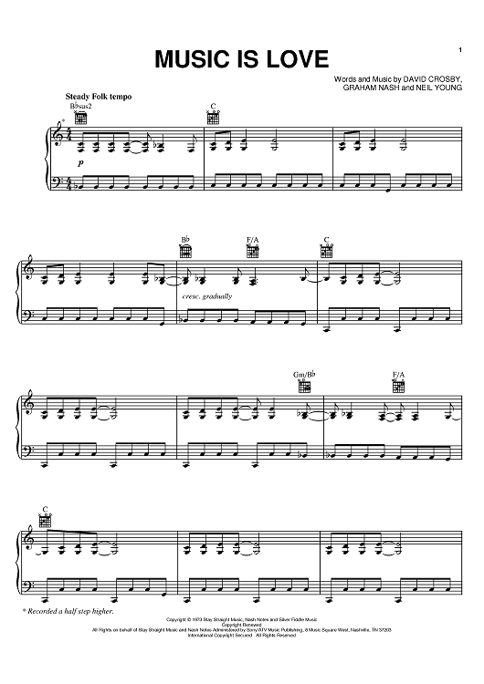 "Music Is Love" Sheet Music by Crosby, Stills, Nash & Young