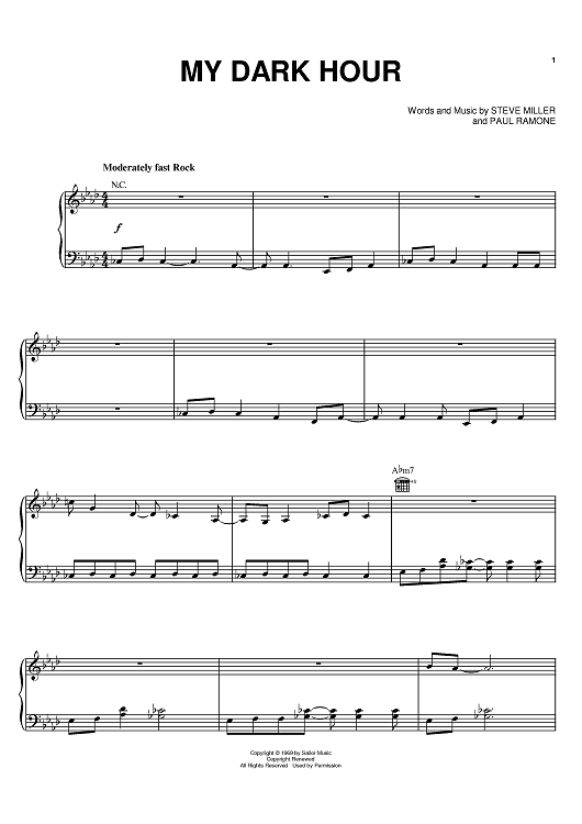 Digital Sheet Music for My Dark Hour by Steve Miller, Steve Miller Band, Paul Ramone scored for Piano/Vocal/Chords; id:386223