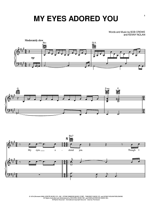 Digital Sheet Music for My Eyes Adored You by Bob Crewe, Kenny Nolan, Frankie Valli scored for Piano/Vocal/Chords; id:397300