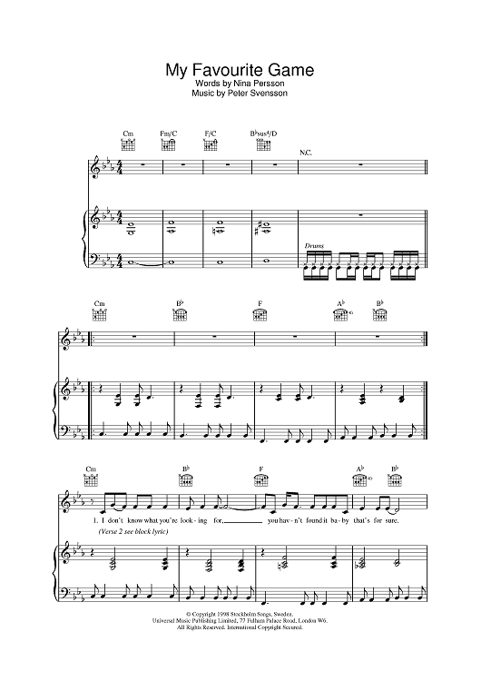 Digital Sheet Music for My Favourite Game by Nina Persson, Peter Svensson, The Cardigans scored for Piano/Vocal/Chords; id:382837