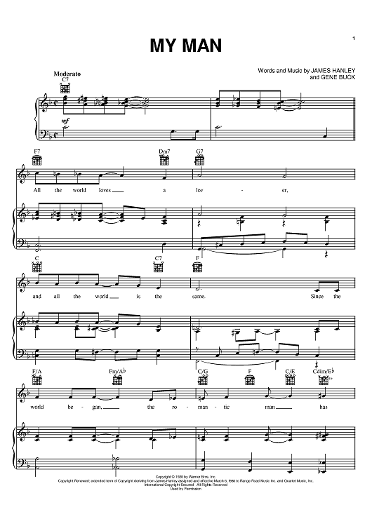 Digital Sheet Music for My Man by James F. Hanley, Gene Buck, Barbra Streisand scored for Piano/Vocal/Chords; id:382273