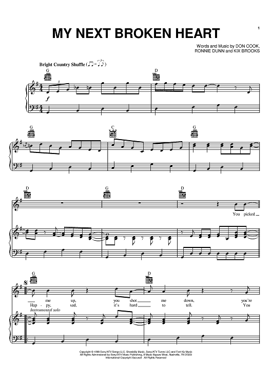 Digital Sheet Music for My Next Broken Heart by Ronnie Dunn, Don Cook, Kix Brooks, Brooks & Dunn scored for Piano/Vocal/Chords; id:381938
