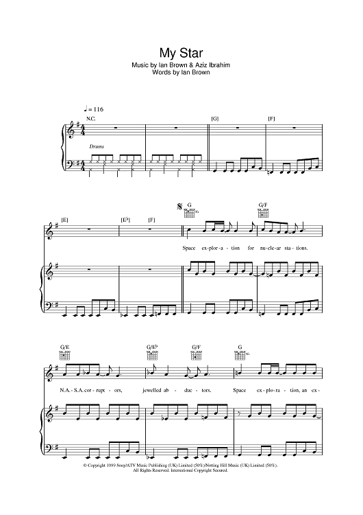 Digital Sheet Music for My Star by Ian Brown, Aziz Ibrahim scored for Piano/Vocal/Chords; id:391163