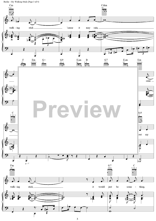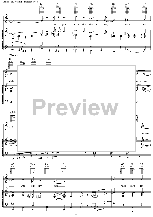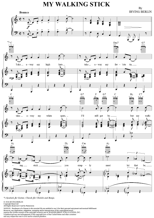 Digital Sheet Music for My Walking Stick by Irving Berlin scored for Piano/Vocal/Chords; id:305422