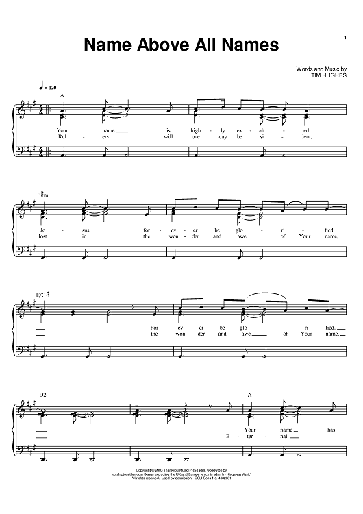 Digital Sheet Music for Name Above All Names by Tim Hughes, Newsboys scored for Piano/Vocal/Chords; id:394032