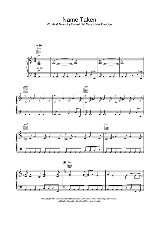 "Name Taken" Sheet Music by Massive Attack