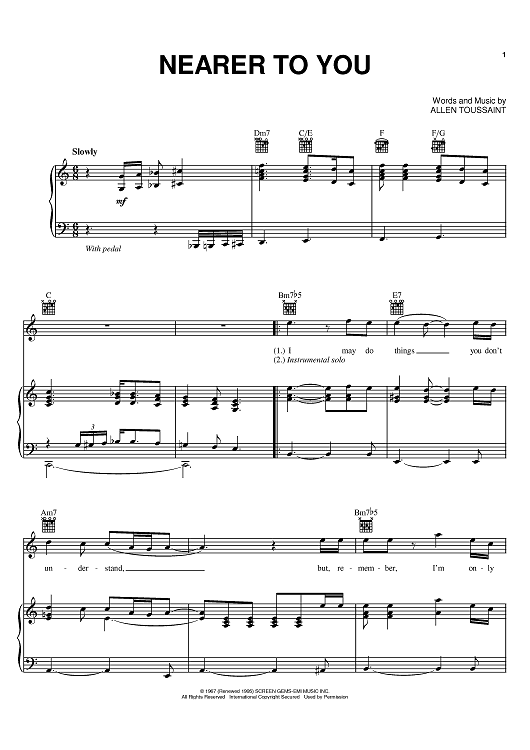 Digital Sheet Music for Nearer To You by Elvis Costello, Allen Toussaint scored for Piano/Vocal/Chords; id:394726
