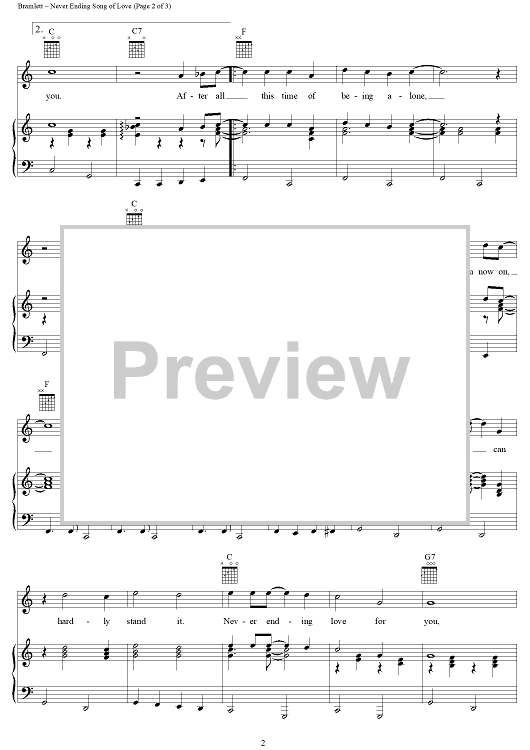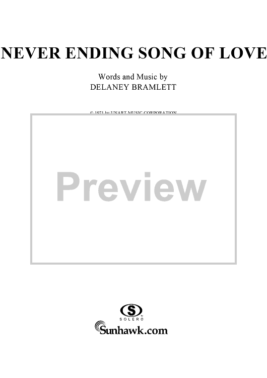 Digital Sheet Music for Never Ending Song of Love by Delaney Bramlett, Delaney & Bonnie & Friends scored for Piano/Vocal/Chords; id:274334