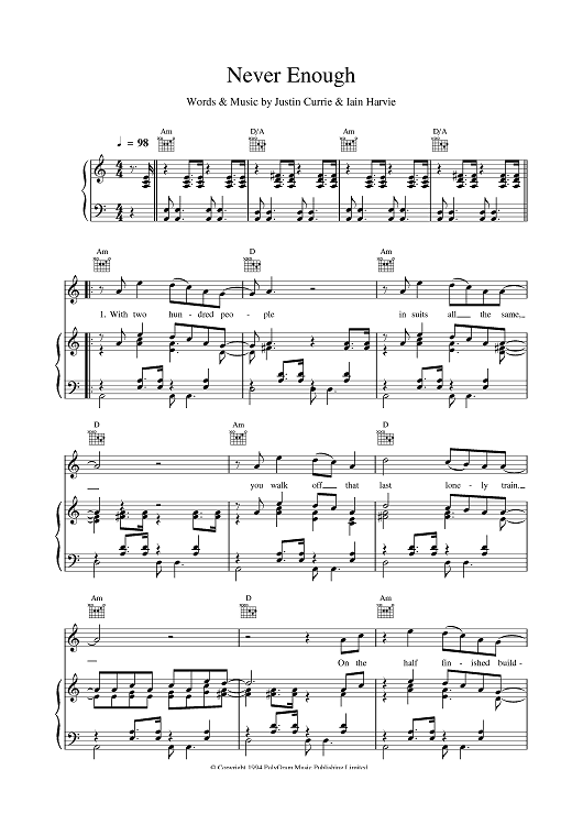 Digital Sheet Music for Never Enough by Del Amitri scored for Piano/Vocal/Chords; id:377313
