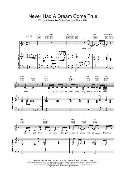 Digital Sheet Music for Never Had A Dream Come True by S Club 7 scored for Piano/Vocal/Chords; id:377184