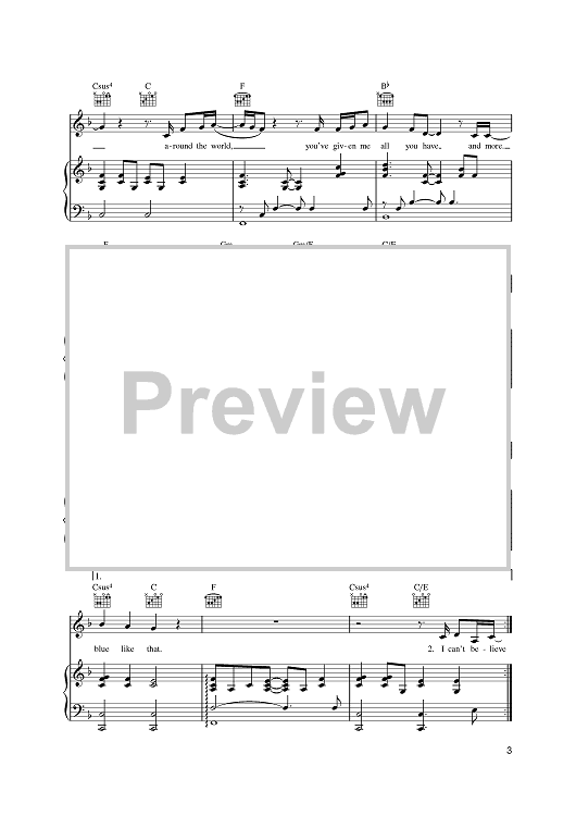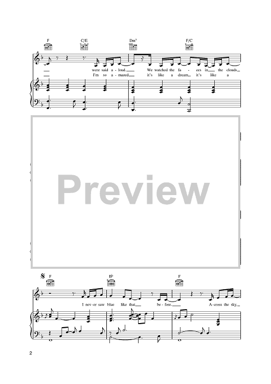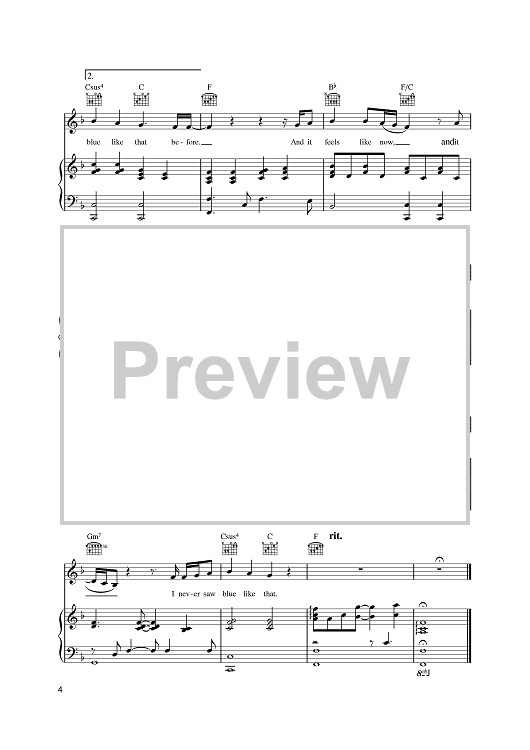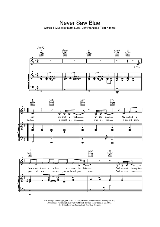 Digital Sheet Music for Never Saw Blue by Jeff Franzel, Tom Kimmel, Mark Luna, Hayley Dee Westenra scored for Piano/Vocal/Chords; id:389275