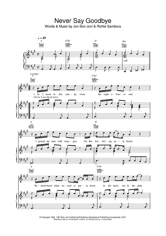 Digital Sheet Music for Never Say Goodbye by Bon Jovi, Richie Sambora, Jon Bon Jovi scored for Piano/Vocal/Chords; id:375514