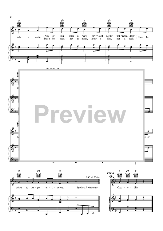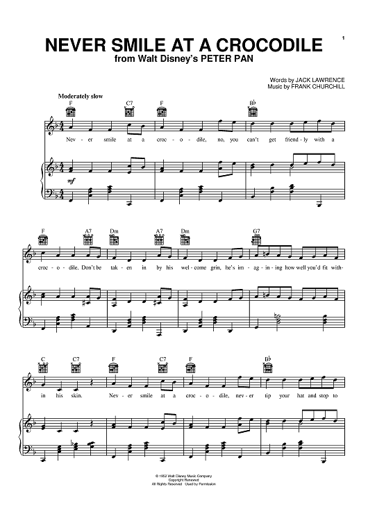 Digital Sheet Music for Never Smile At A Crocodile by Frank Churchill, Jack Lawrence scored for Piano/Vocal/Chords; id:393834