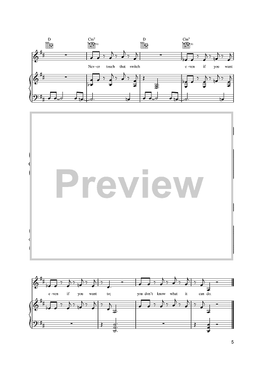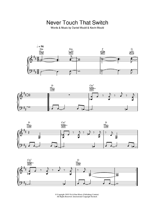 Digital Sheet Music for Never Touch That Switch by Robbie Williams, Daniel Mould, Kevin Mould scored for Piano/Vocal/Chords; id:393631