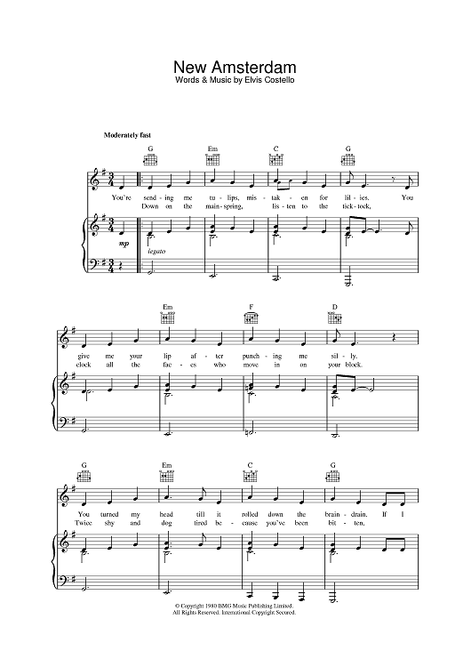 Digital Sheet Music for New Amsterdam by Elvis Costello scored for Piano/Vocal/Chords; id:390052