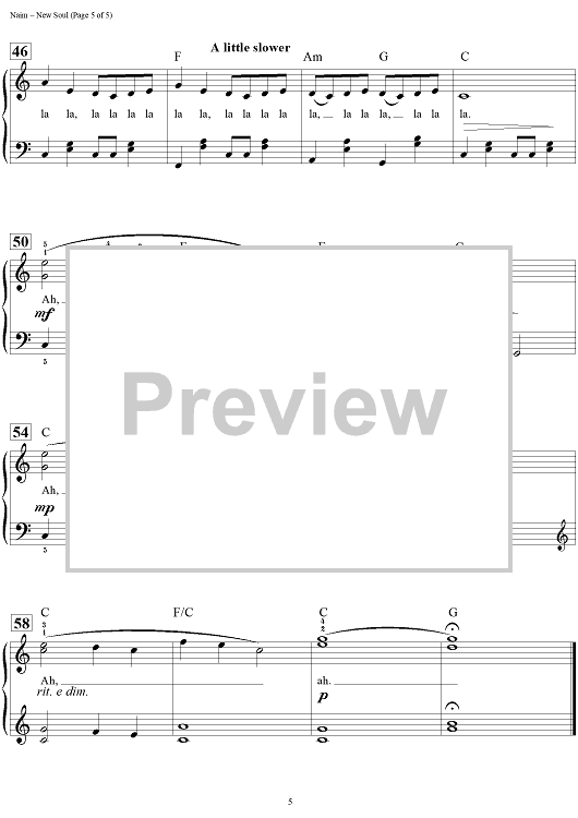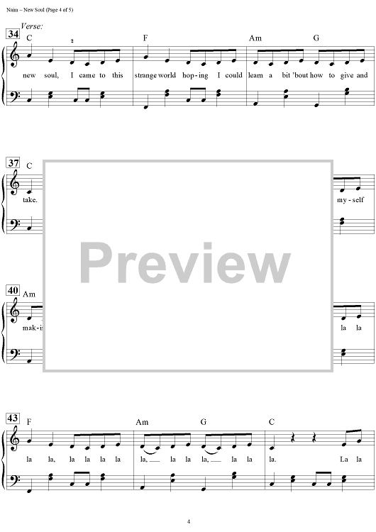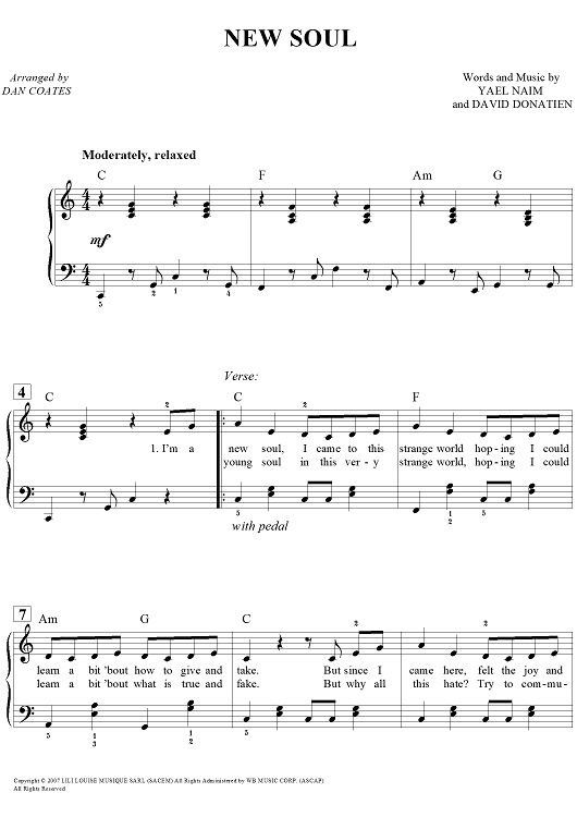 Digital Sheet Music for New Soul by Dan Coates, Yael Naim, David Donatien scored for Easy Piano/Vocal/Chords; id:457526