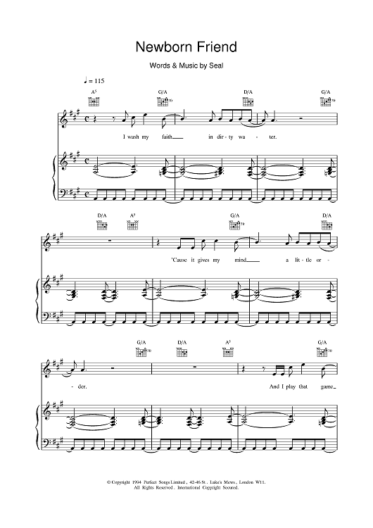 Digital Sheet Music for Newborn Friend by Seal scored for Piano/Vocal/Chords; id:375943