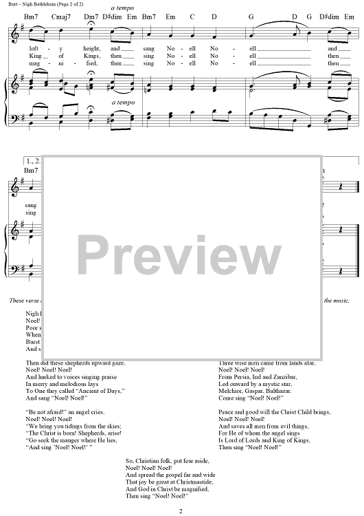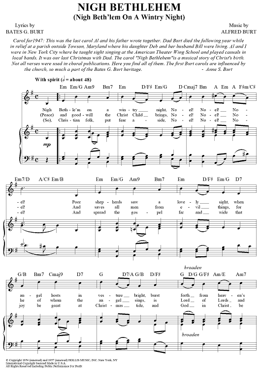 Digital Sheet Music for Nigh Bethlehem (On A Wintry Night) by Alfred Burt, Bates G. Burt scored for Piano/Vocal/Chords; id:430331
