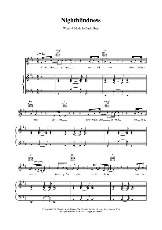 Digital Sheet Music for Nightblindness by David Gray scored for Piano/Vocal/Chords; id:377074
